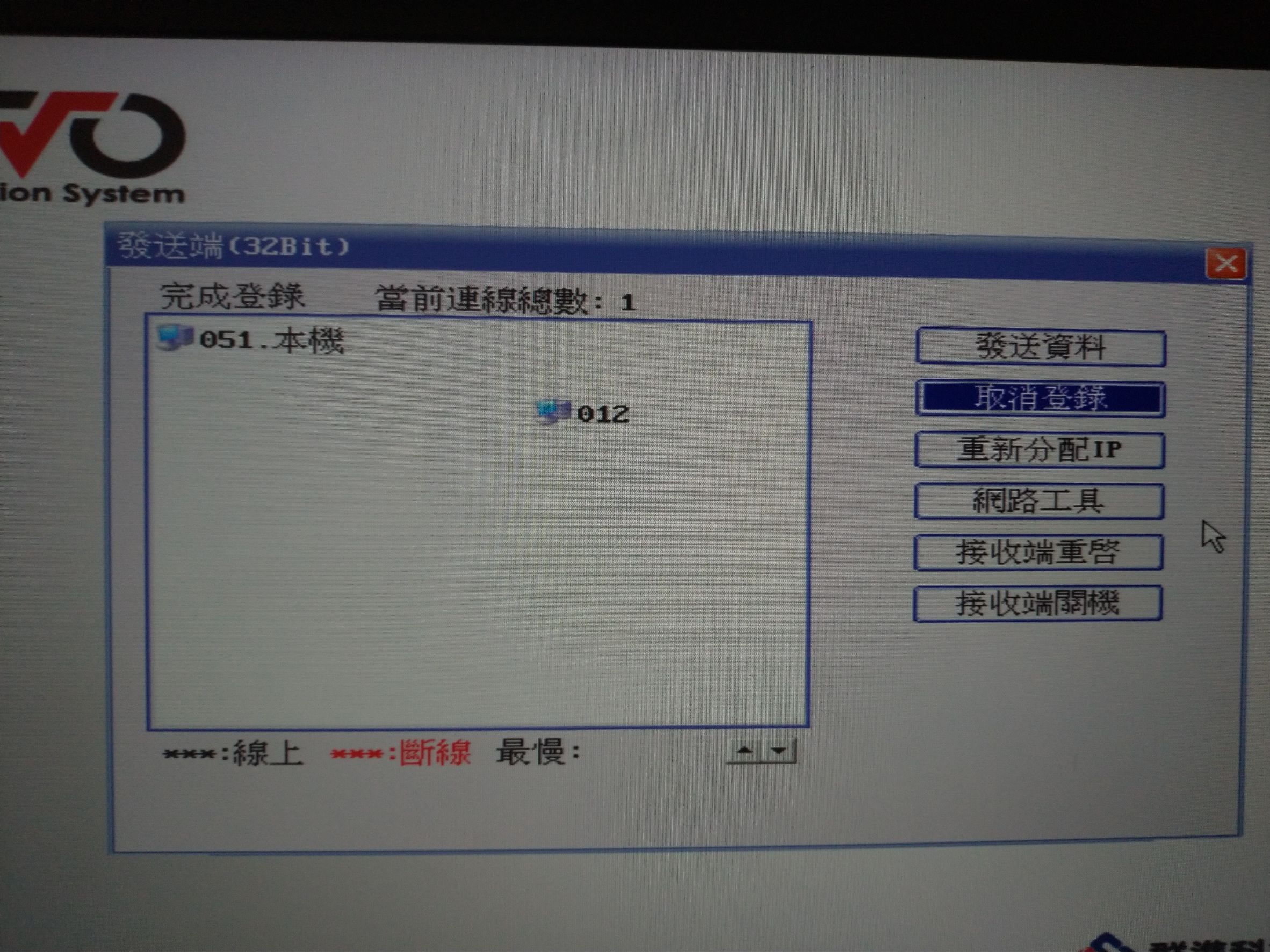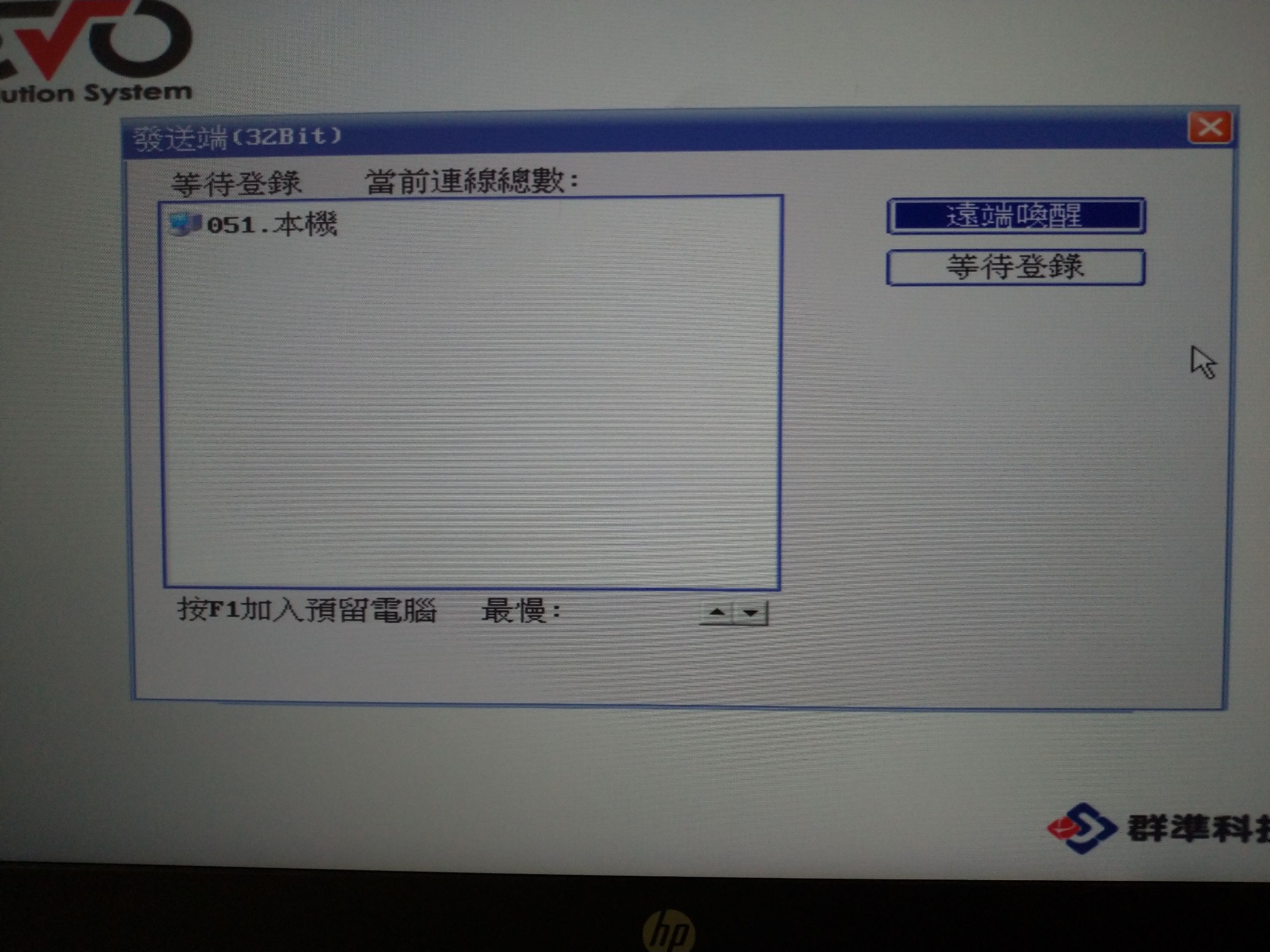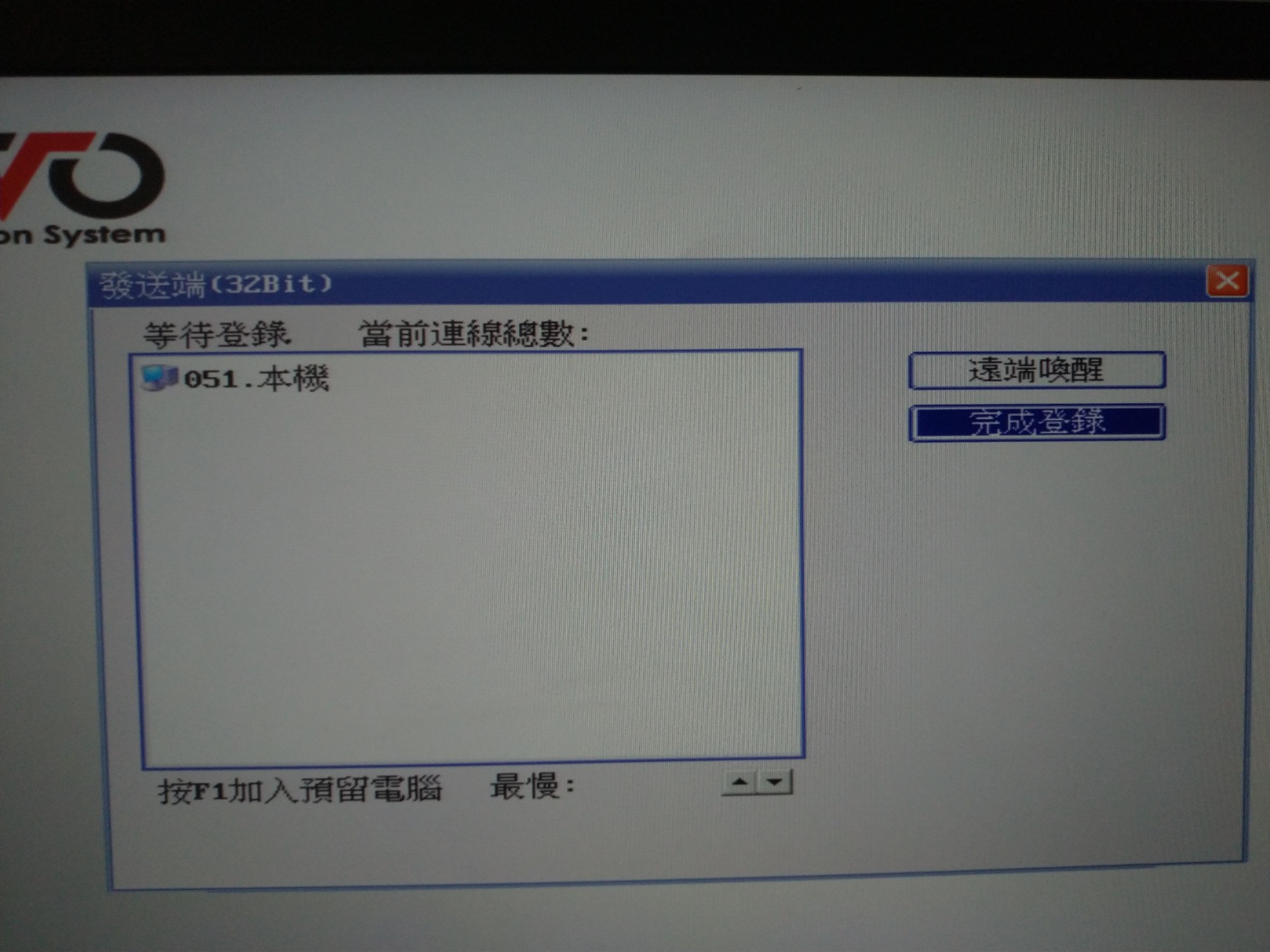 開啟接收端電腦,進入防寫卡畫面(選擇磁區畫面)按下"F9"進入防寫連線傳輸,輸入密碼。